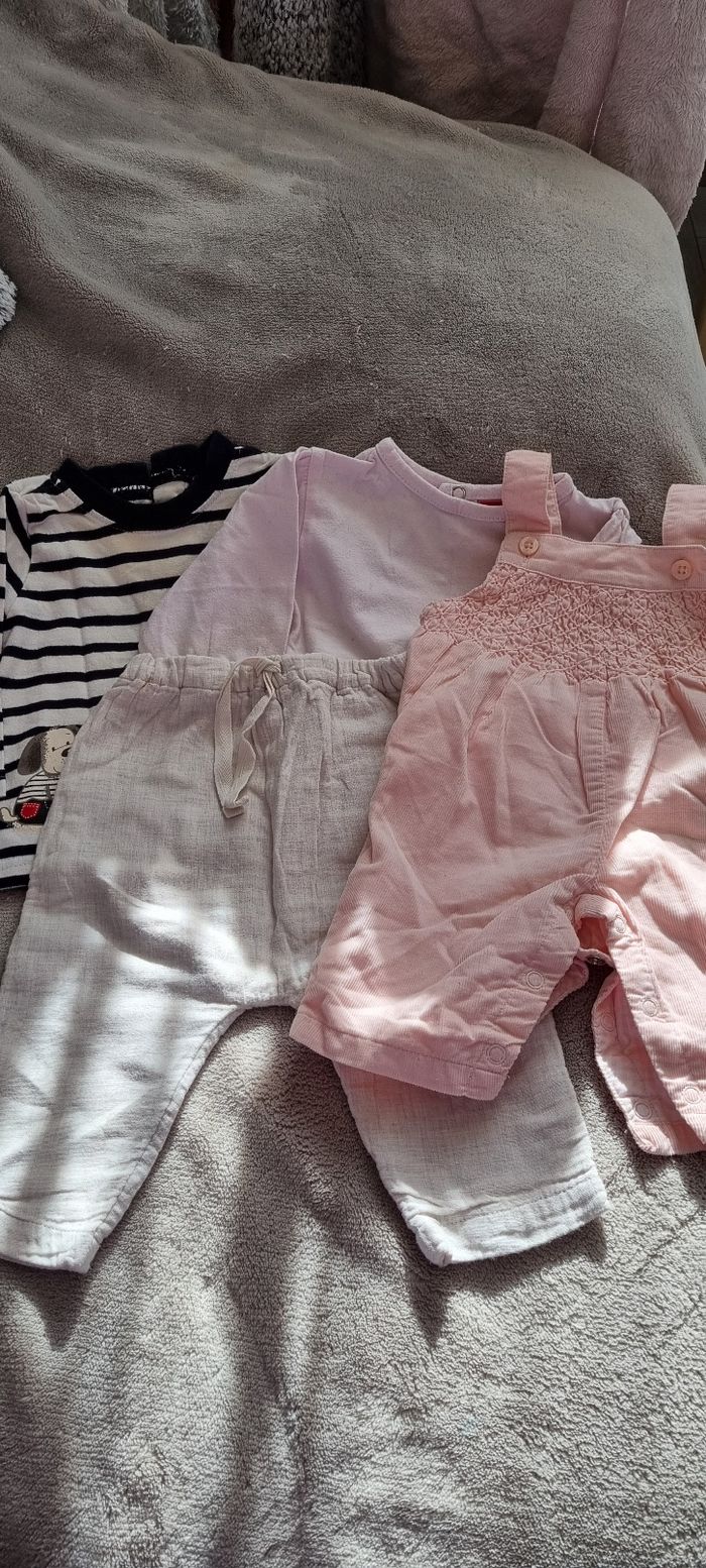 Lot vetements Pantalon fin Tee-shirt manches longues tachés Une salopette courte