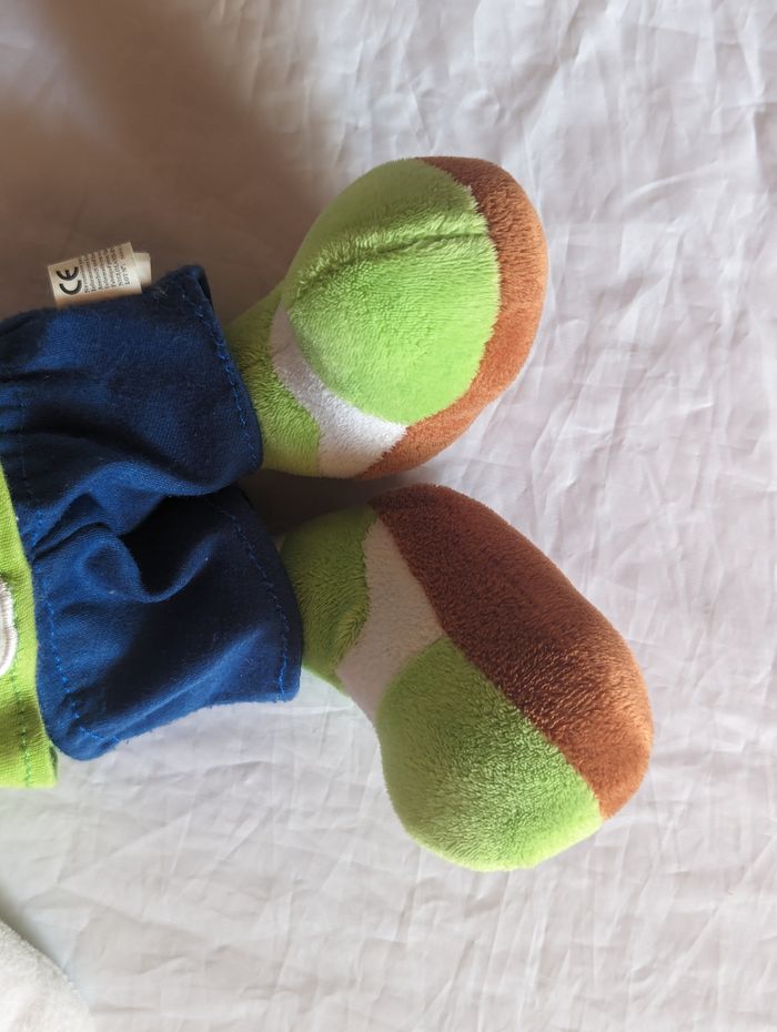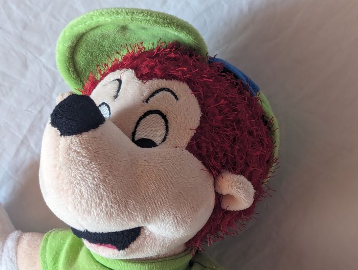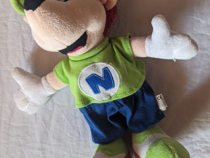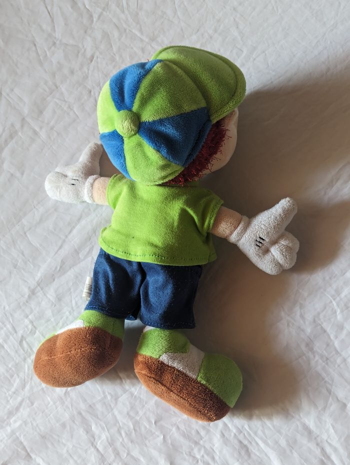 Petit Enfant avec une Casquette et un T-shirt Vert avec un Médaillon Blanc et avec la Lettre N au Centre. Peluche pour les Petits Enfants et les Bébés. ☑ "Petit" Enfant. ☑ Casquette. ☑ T-shirt "Vert". ☑ Médaillon Blanc Lettre "N". Spécifications: Dimensions de l'Enfant: Env. 32 x 27 x 16 cm Couleur du Short: Bleu (Nuit) Couleurs du T-shirt: Vert - Blanc - Bleu Couleurs de la Casquette: Vert - Bleu Couleurs des Souliers: Vert - Marron - Blanc Couleurs du Visage: Rose - Blanc - Noir Couleur des Cheveux: Rouge Couleur des Gants: Blanc Réf: pe36