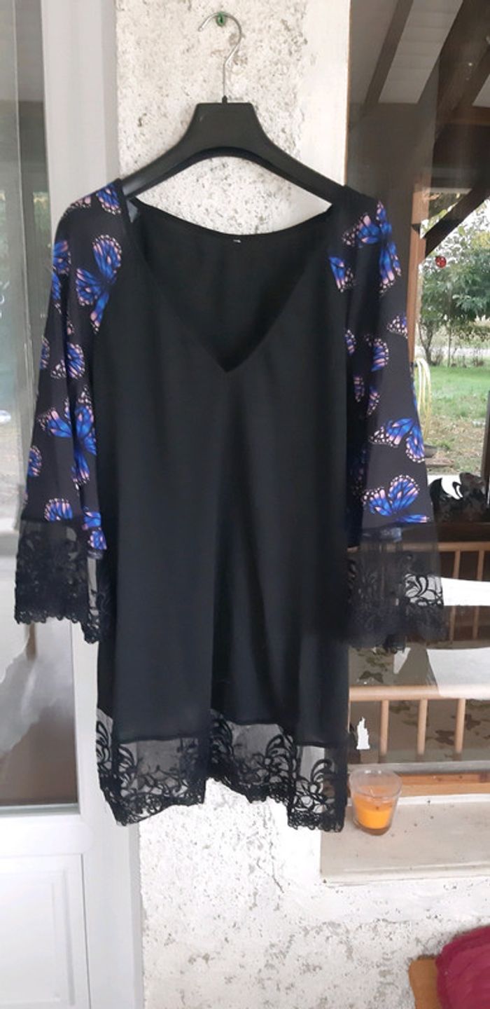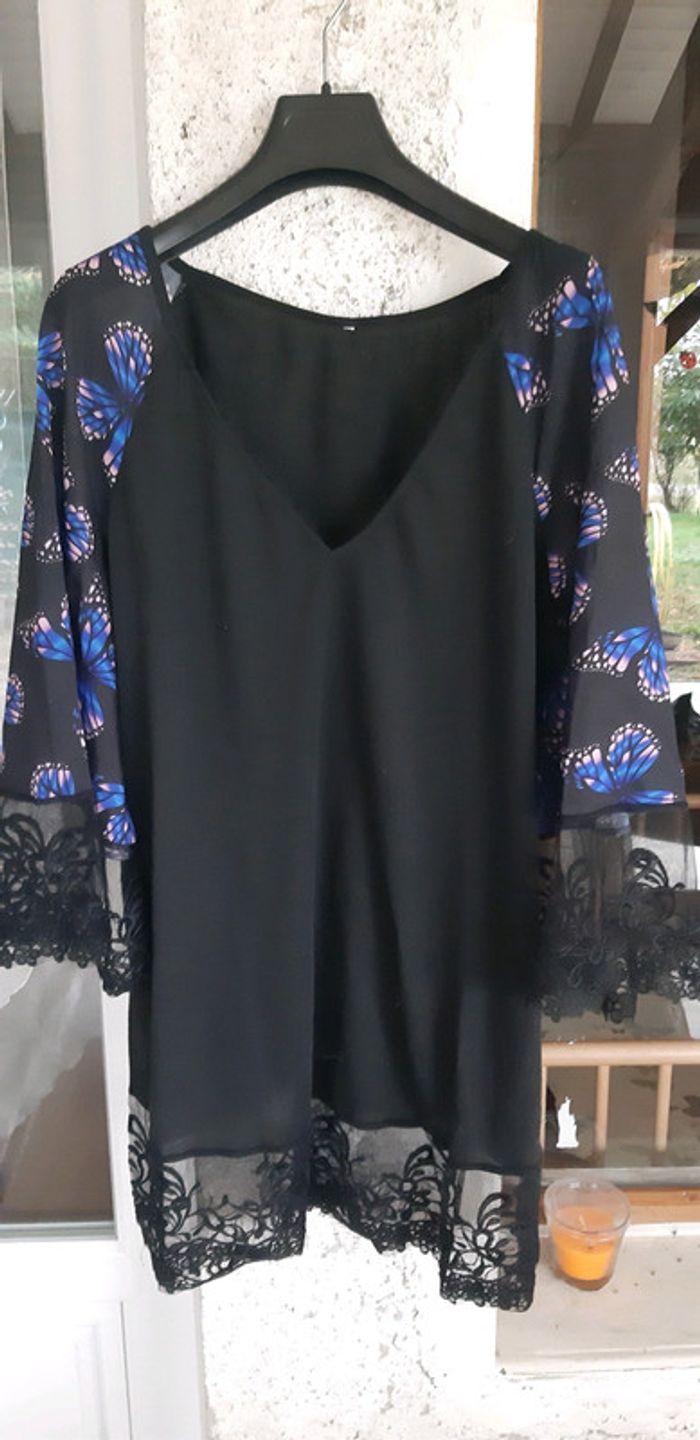 #hautlong #type #tunique #originale #dentelle #noiretbleu #motif #papillon #taille42 Dispo papillon rose