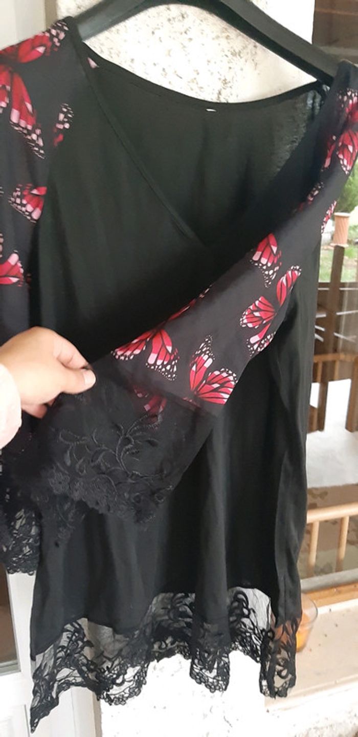 #hautlong #tunique #original #fluide #noir #fin #motif #papillon #taille42 #petit44 Dispo en papillon bleu
