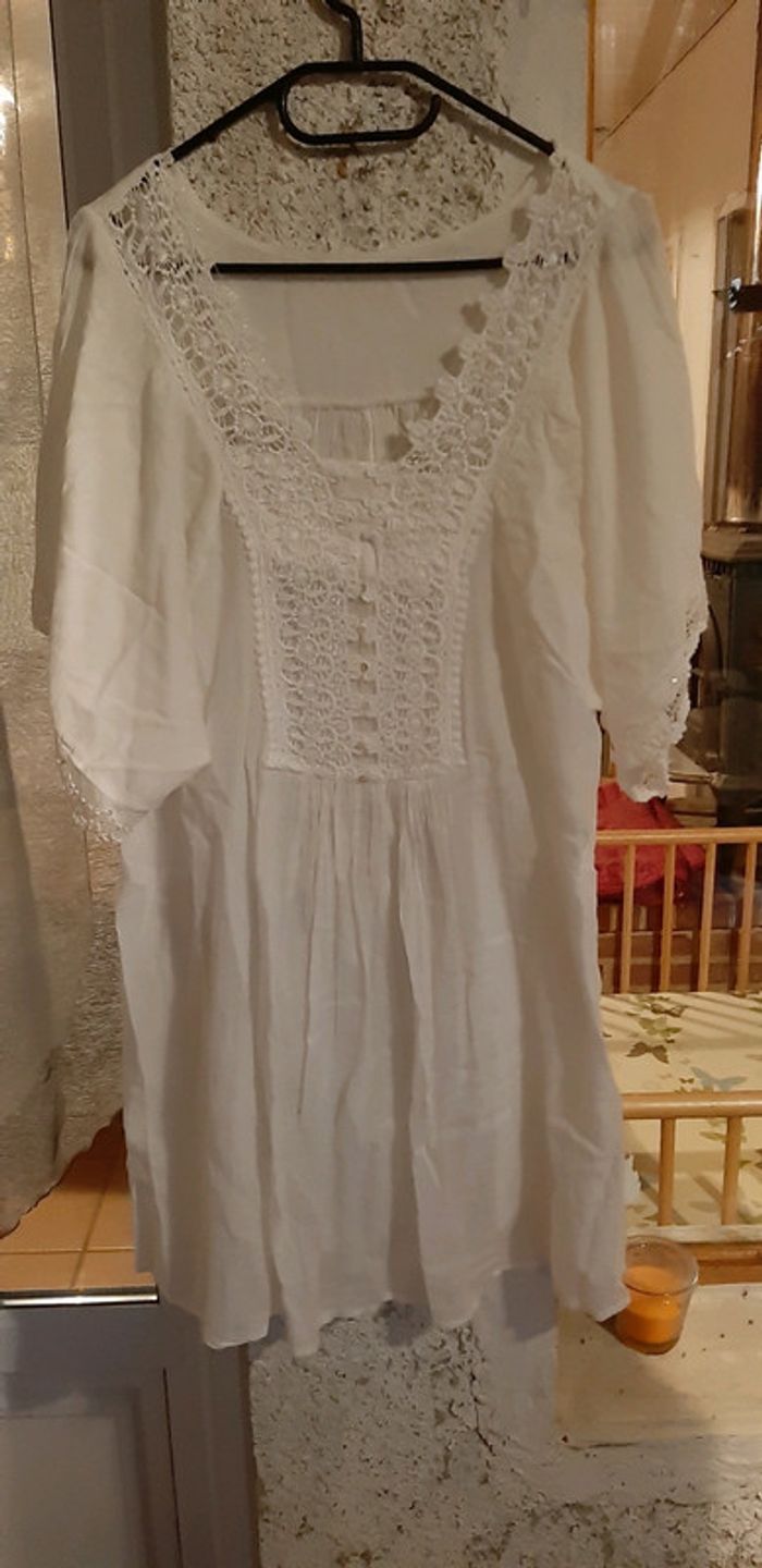 #robe #tunique #originale #dentelle #broderie #blanche #tresbonetat #taille44