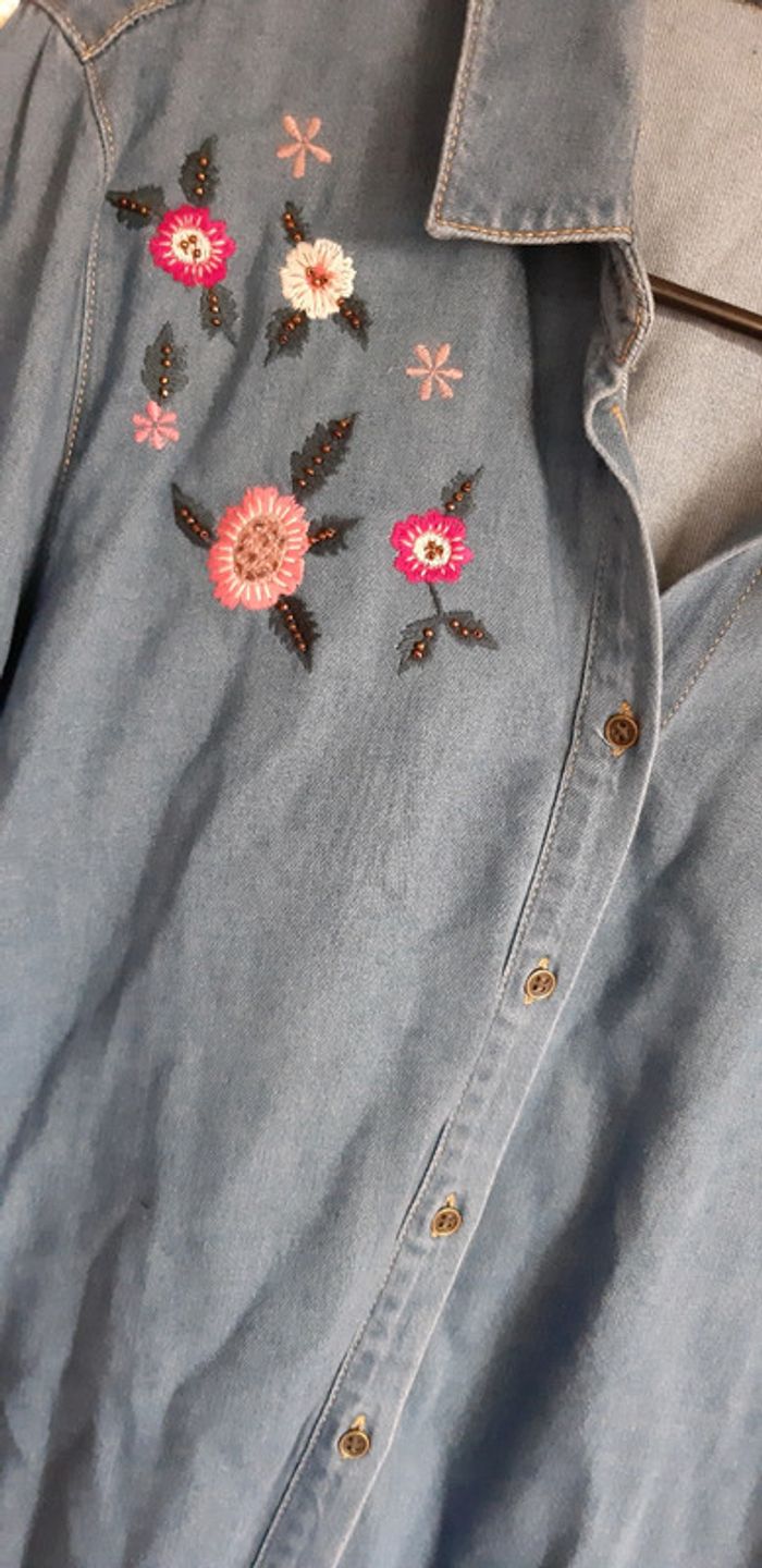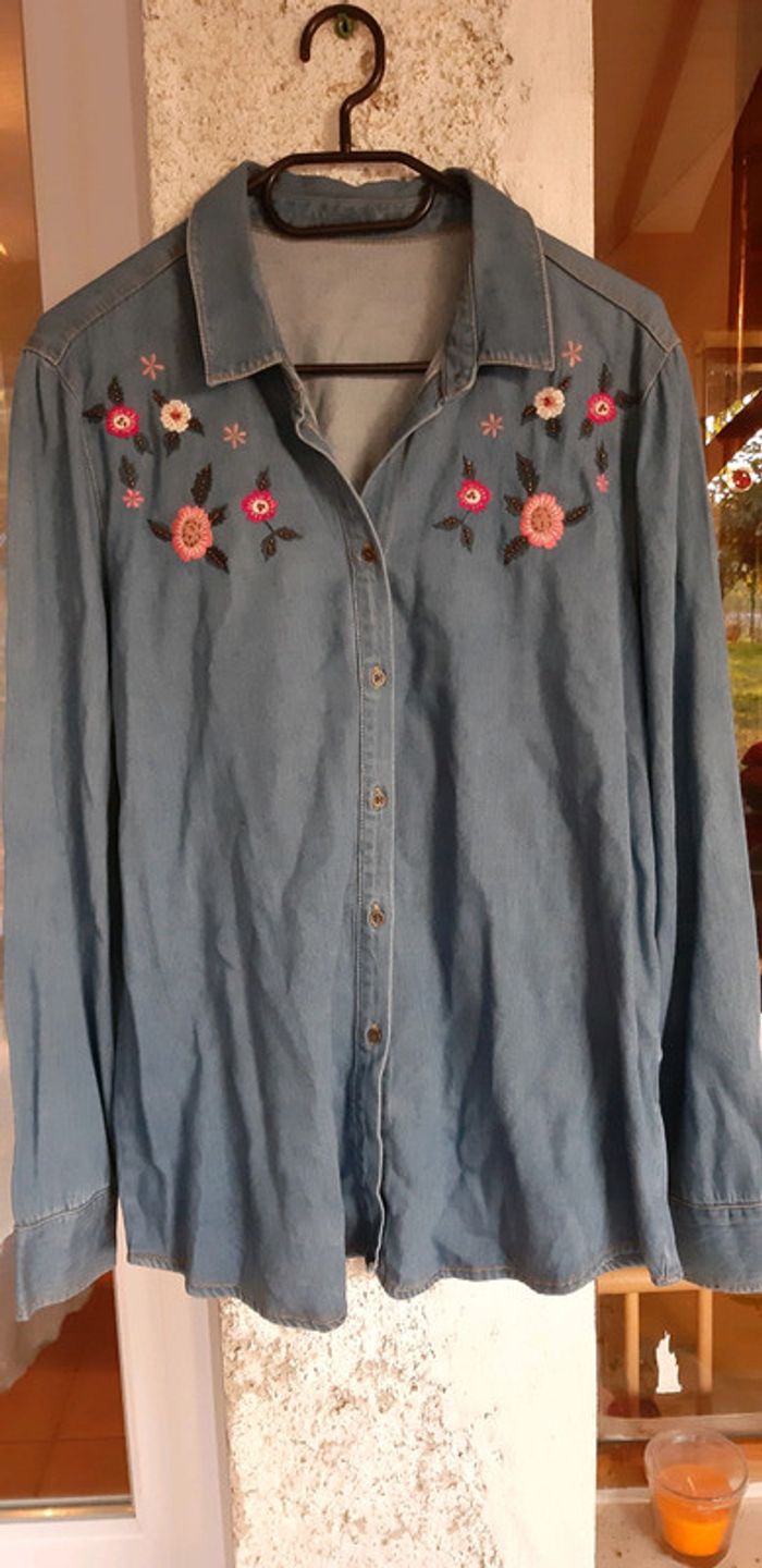 #chemise #chemisier #femme #tresbonetat #typejeans #moins #épais #motif #couture #fleur #original #taille42 #petit44