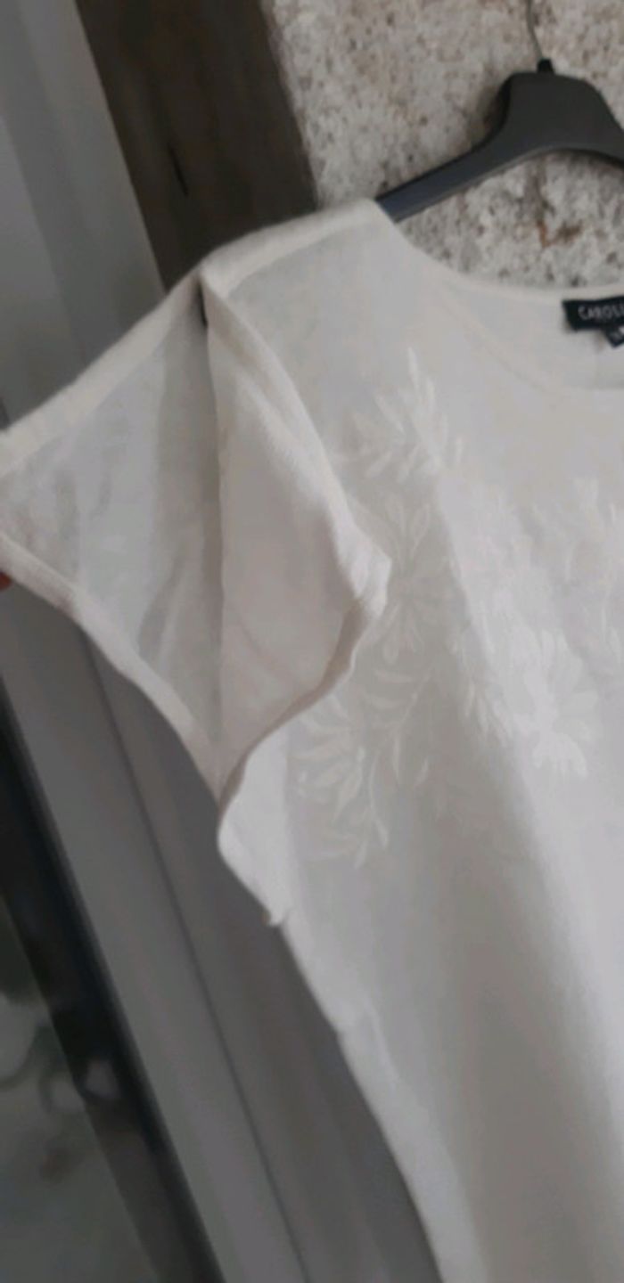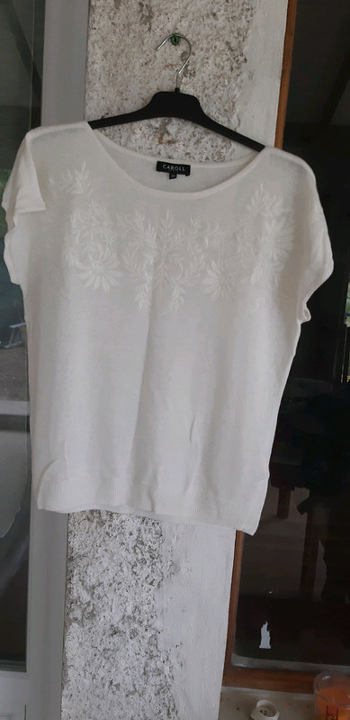 #haut #blanc #lin_véritable #lin #caroll #brodé38 #broderie #femme #ouvertureepaule #original #taillem #taille38 #excellentetat #porté1fois