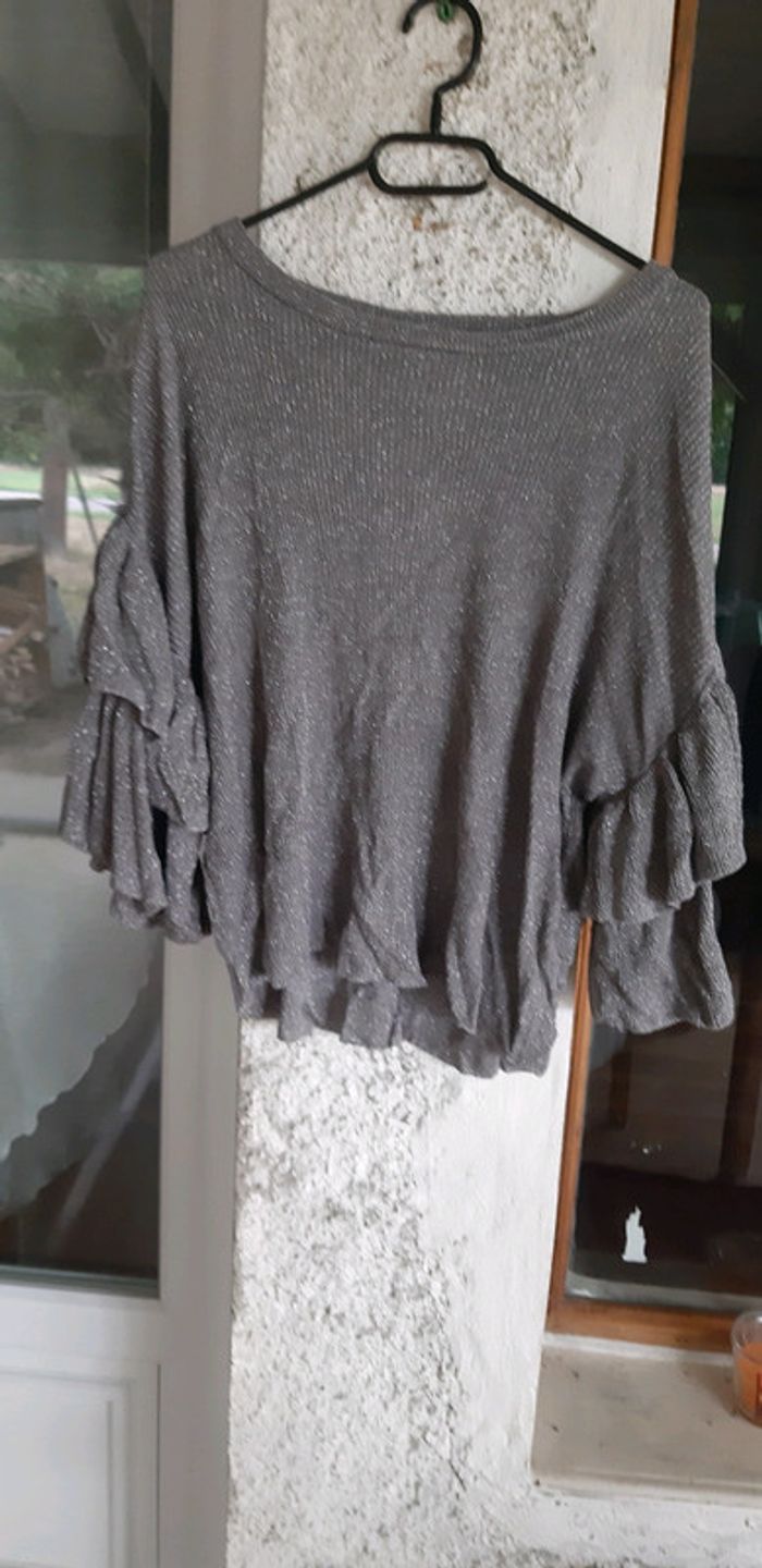 #pull #gris #argenté #hetm #hm #original #tresbonetat #manchebouffante #taille40
