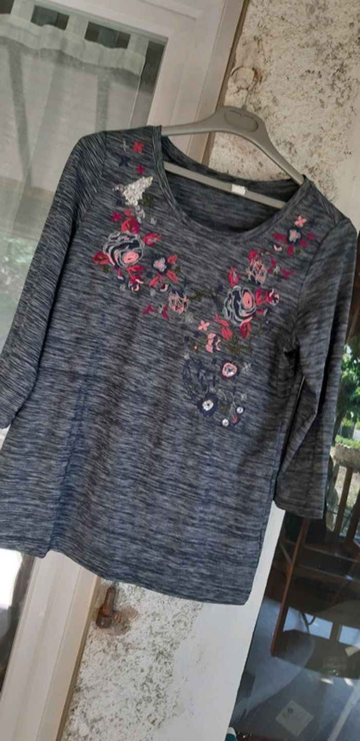 #haut #femme #gris #broderie #fleur #taille42 #tresbonetat #original