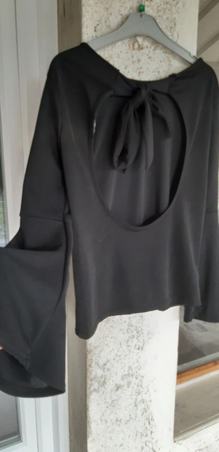 #blouse #noire #originale #boohoo #tailles #taille36 #dosdenudé #manchebouffante #tendance #nouage