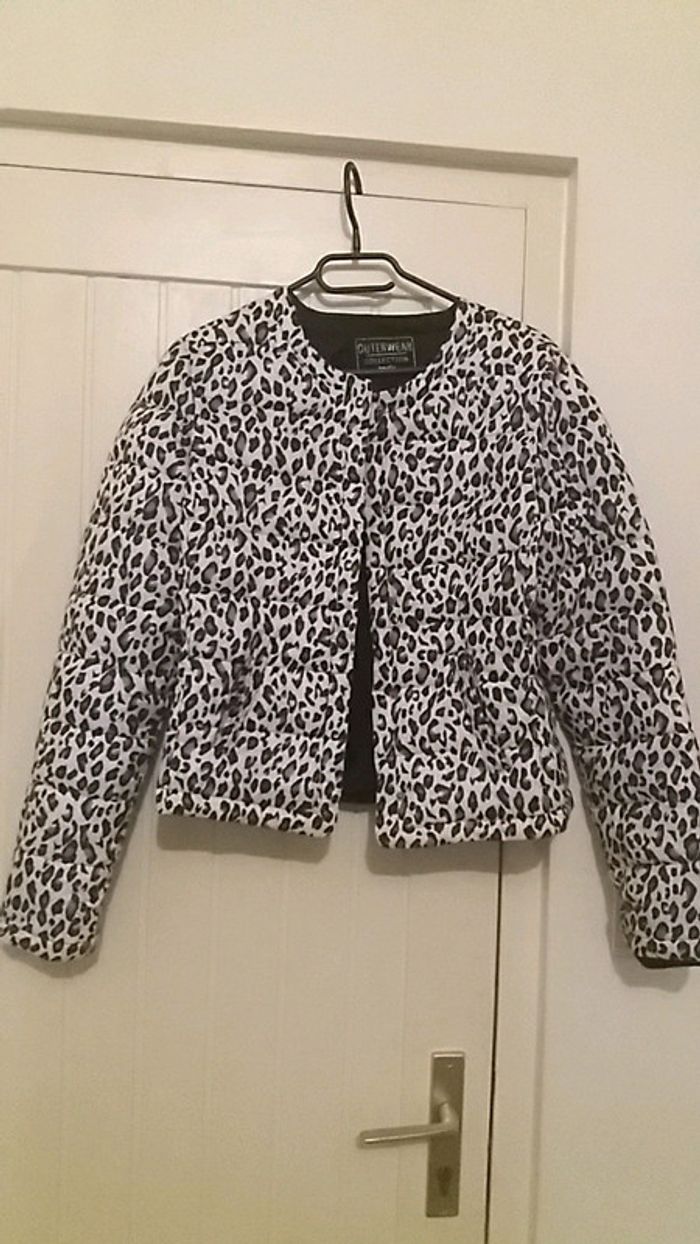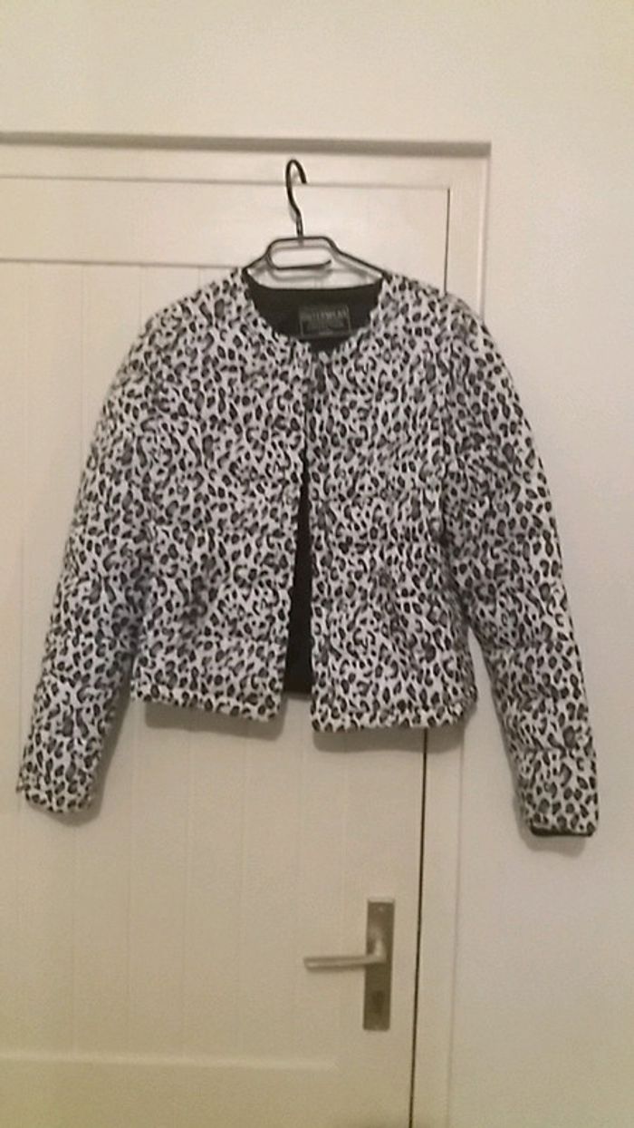 #manteau #court #type #doudoune#hiver #commeneuf #tailles #taille36 #jennyfer #poches #motif #noir #blanc #gris #original acheter 40e porter 1 fois