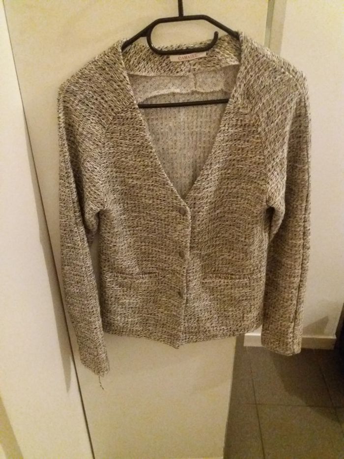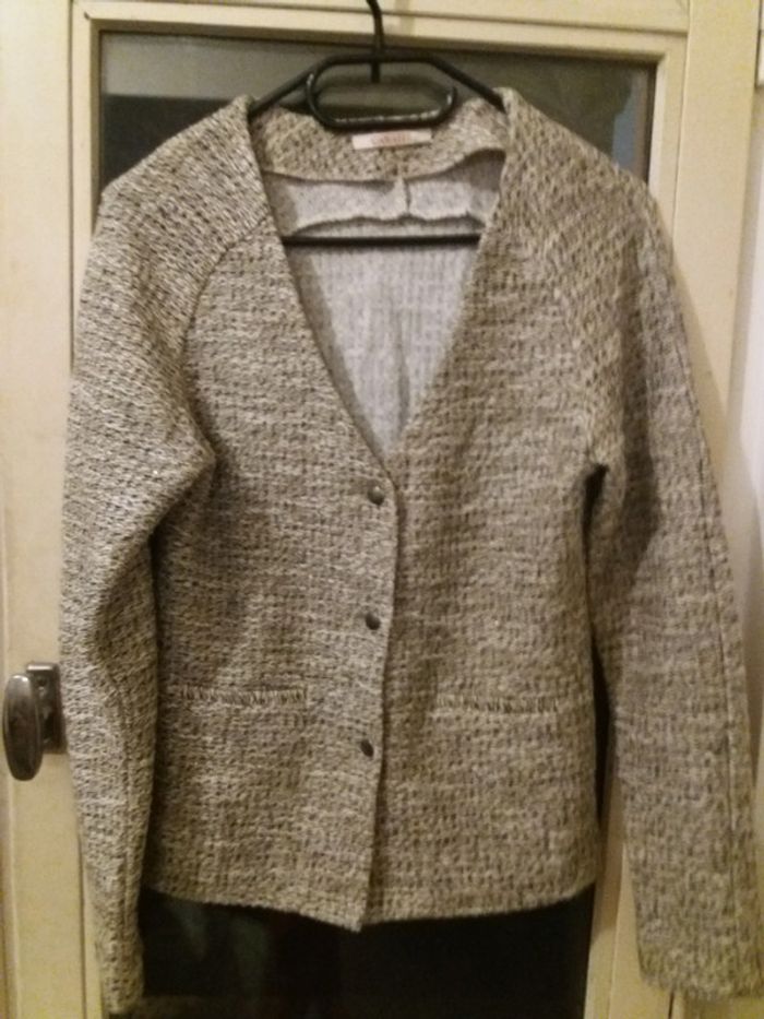 #veste #femme #camaieu #beige #gris #chiné #taille36 #3boutons #pression #tresbonetat