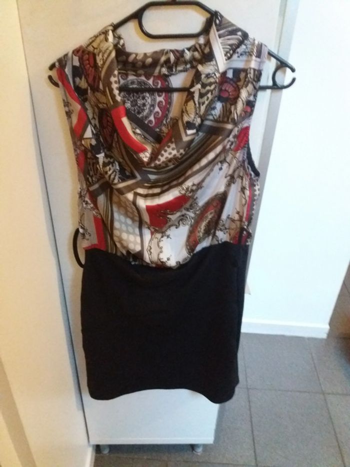 #robe #bimatière #type #foulard #enhaut #taille3638 #tresbonetat #sansceinture #encoche #ceinture #dispo #noire #couleur #vintagestyle #moulante #enbas vendu sans ceinture il y a toujours l'emplacement pour en mettre peut etre porter sans et retirer l'elastique sans etiquette marque car genante 😉
