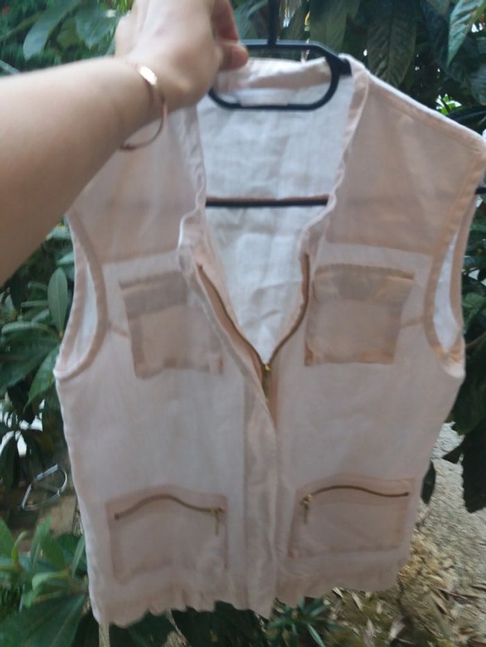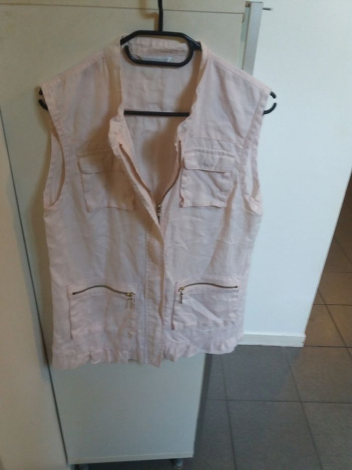 #haut #lin #rosepale #tresbonetat #multipoches #fermetureéclair #promod #taille38 #taillem