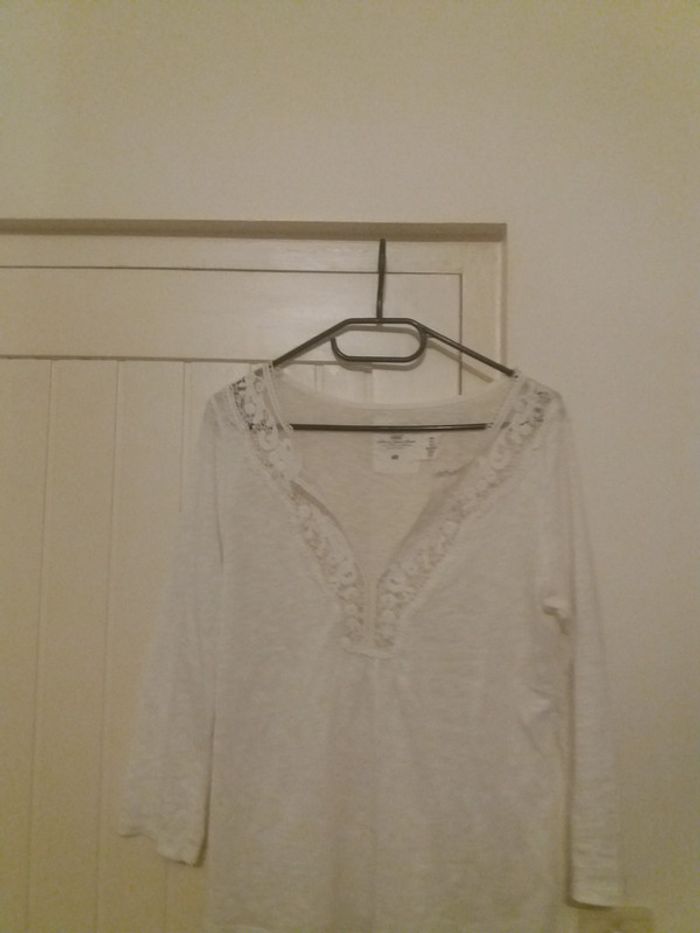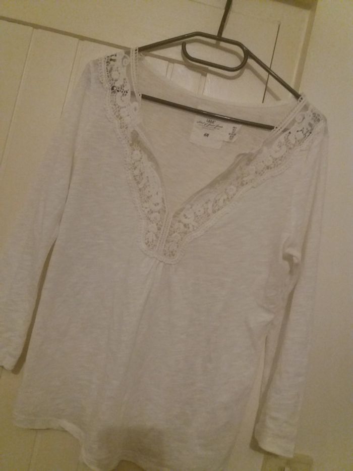 #haut #fluide #hetm #blanc #dentelle #taille3638 #tresbonetat taille inscrite s mais convient a un 36 et 38 legere transparence