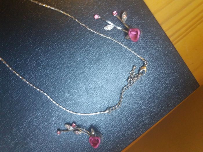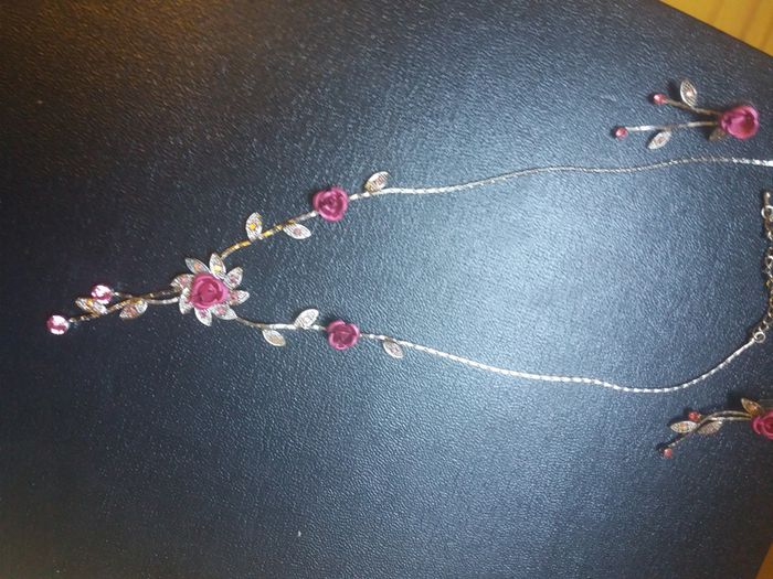 #parrure #bijoux #bouclesdoreilles #collier #fin #rose #fleur #argenté #fantaisie