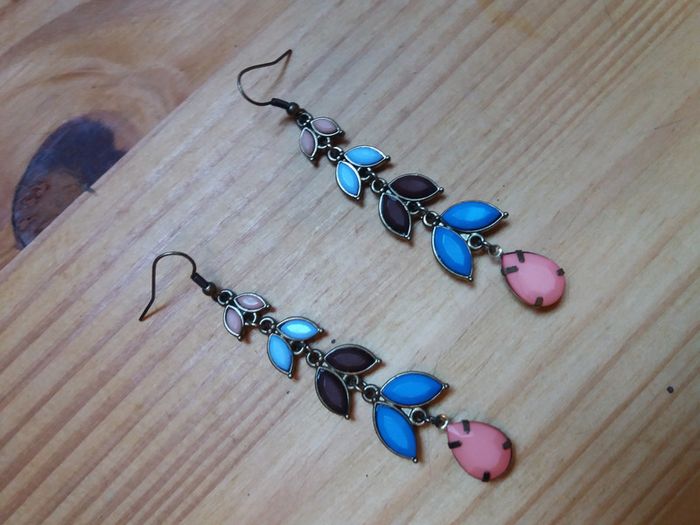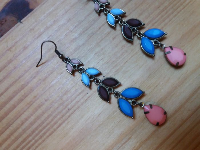 #boucle #bijoux #vintagestyle #pendante #coloré #marron #bleu #rose #vintage