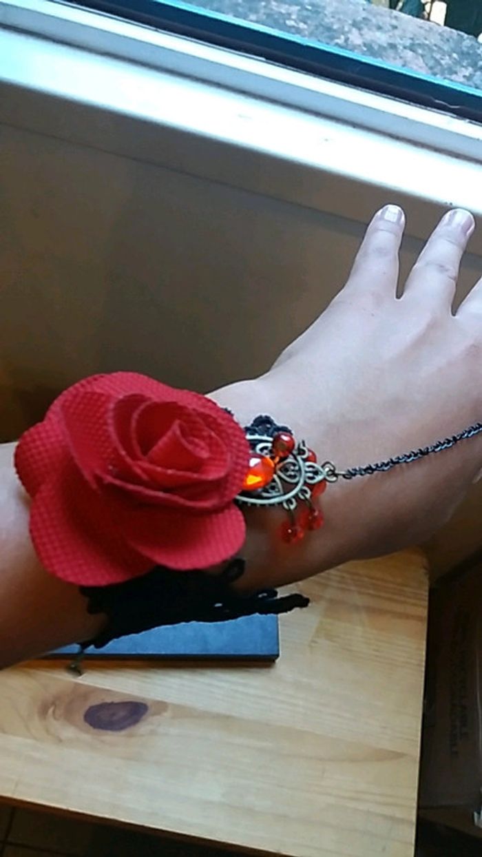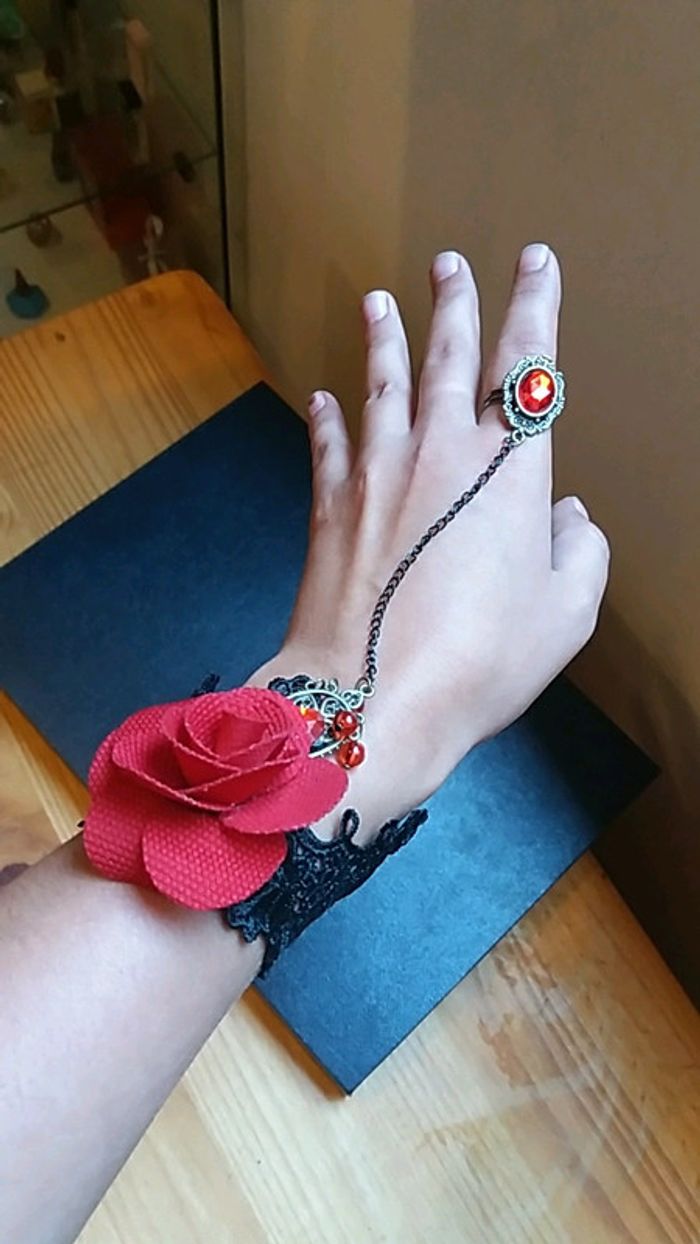 #bracet #bague #attaché #original #vintagestyle #tresbonetat #adjustable #rougeetnoir #rose #dentelle #vintage