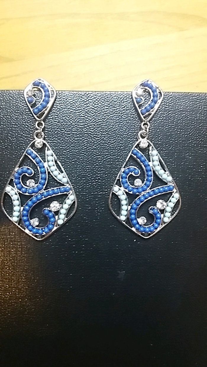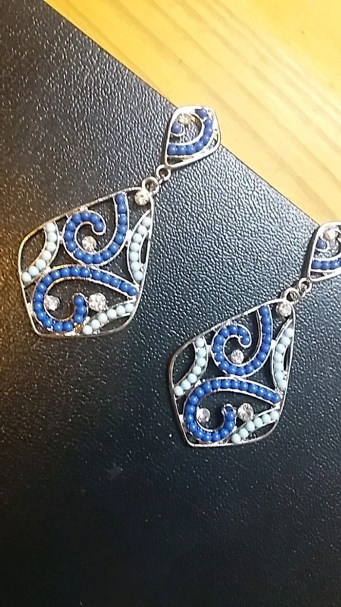 #boucles #fantaisie #vintage #tresbonetat #bleu #perle #bijoux #bouclesdoreillespendantes