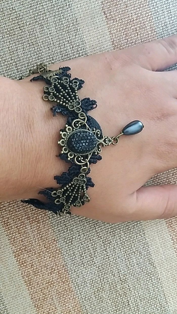 #bracelet #noir #vintagelook #broderie #perle #adjustable #original