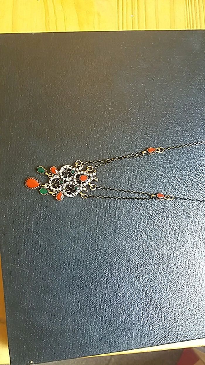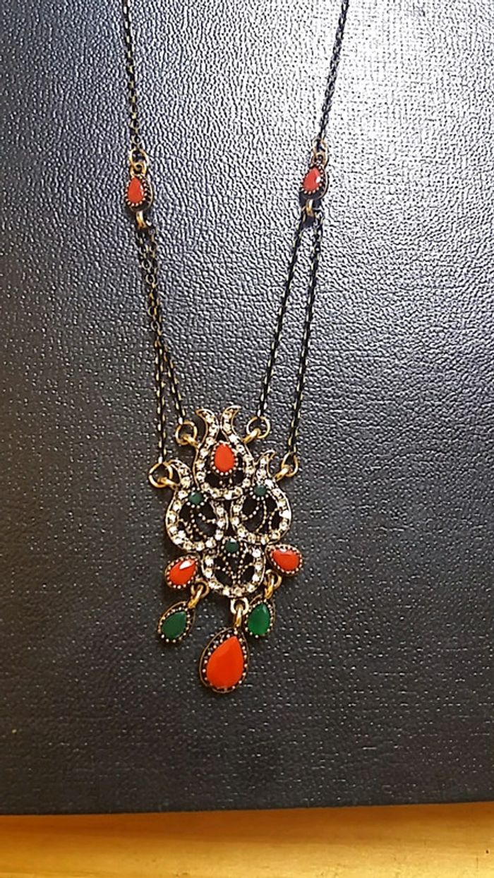 #collier #fantaisie #original #coloré #strass #rouge #vert #doré