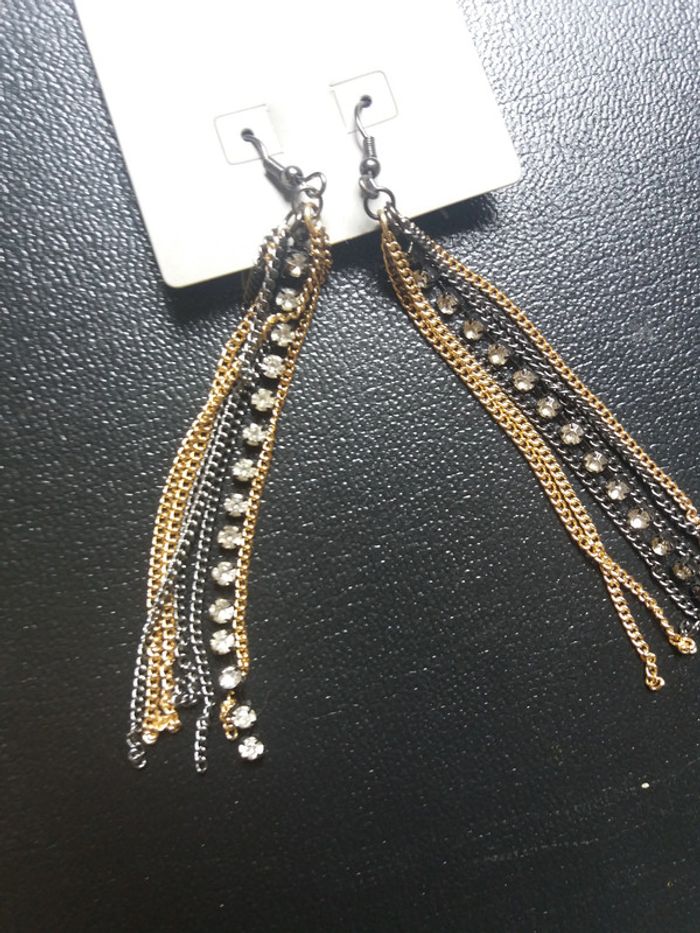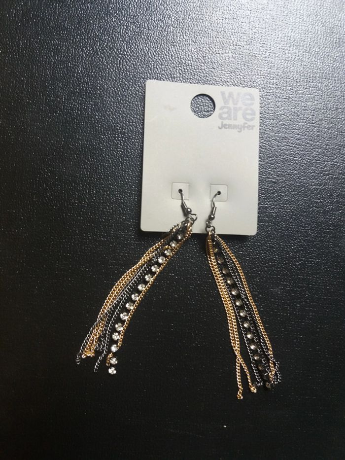 #boucle #longue #pendante #noire #doré #strass #neuve #jennyfer acheter 6.99 neuve