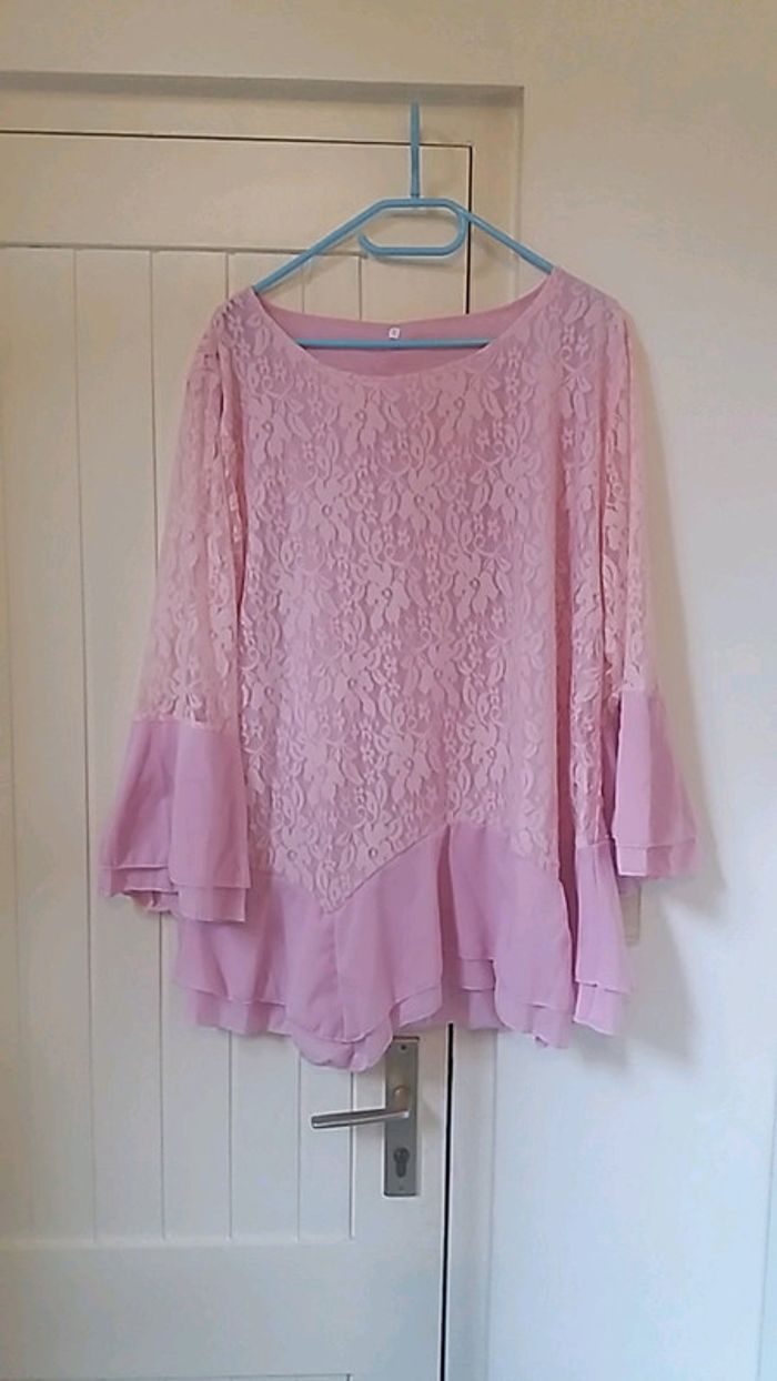 #blouse #ample #tunique #dentelle #rose #taille46 #tresbonetat #fluide #doublure