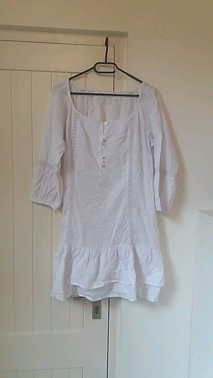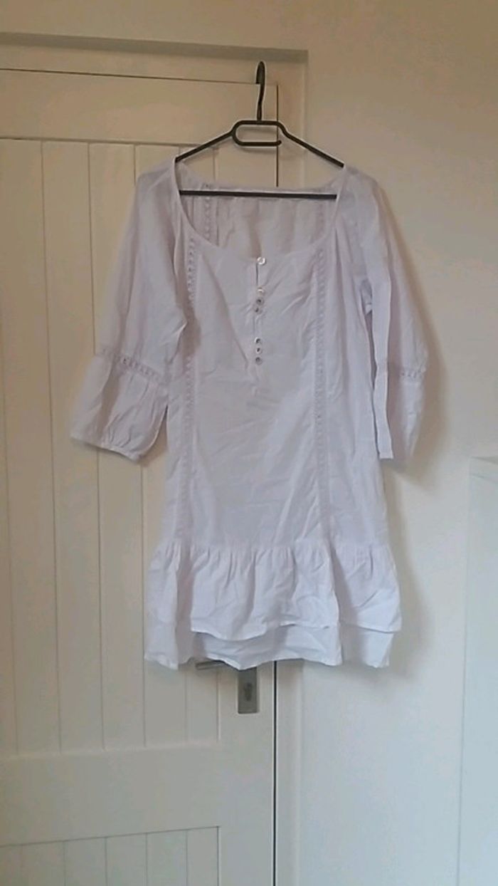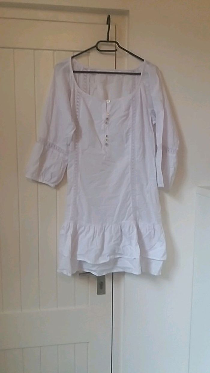 #blanche #dentelle #taille44 #fluide #manche_trois_quarts a mettre avec un dessous de robe etiquette manquante