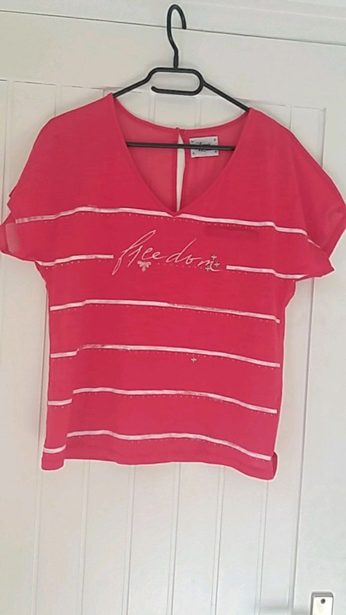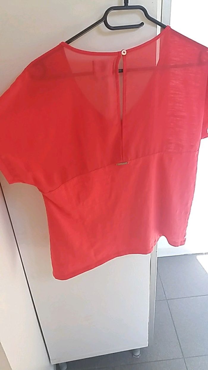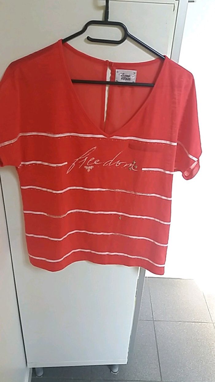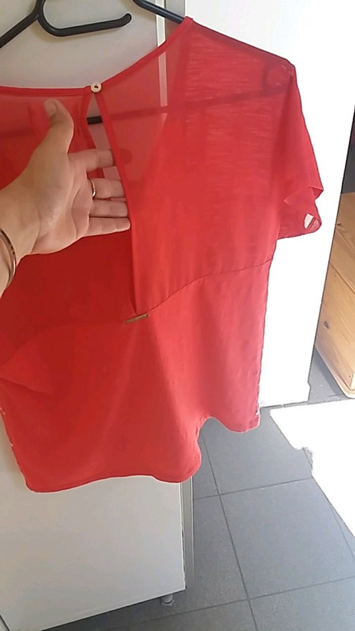 #taille36 #femme #haut #voilage #lamodeestavous #rouge #blanc #motif #ouverturedansledos #lmv comme neuf !!