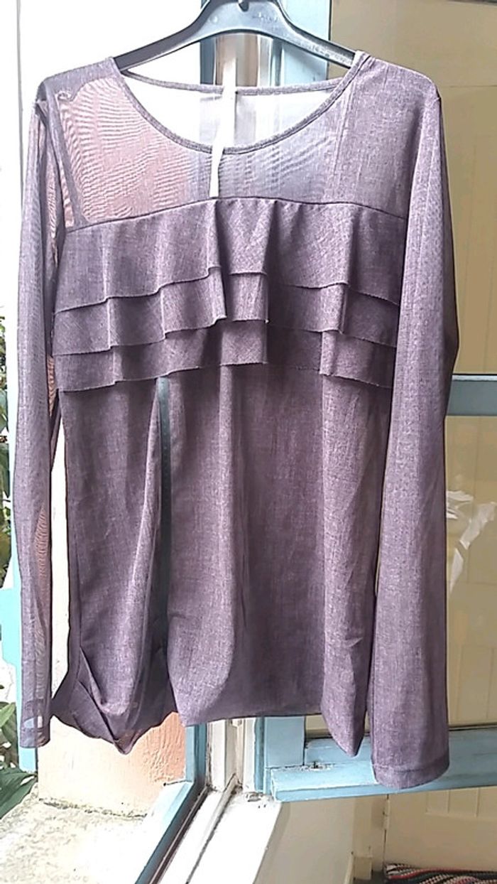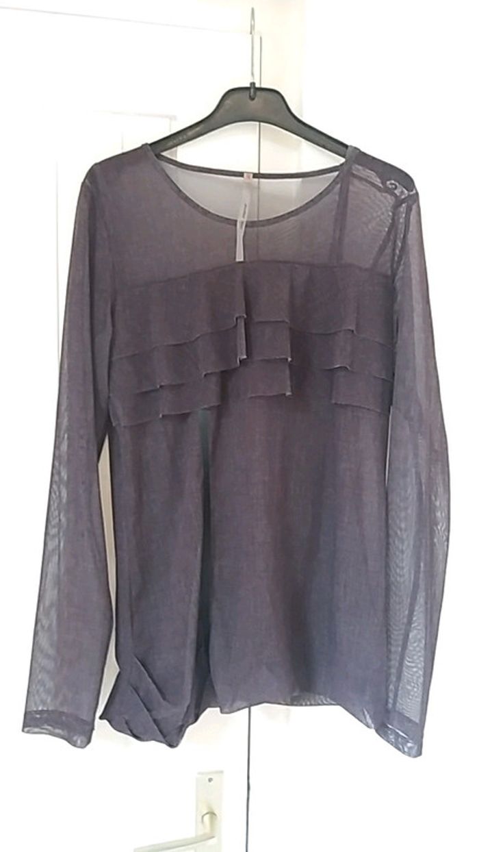 #copcopine #taille40 #tresbonetat #original #copaincopine Joli haut 2 en 1 voilage et debardeur en 1 seule piece Manche transparente et sur le haut tout le reste et non transparent car il y a le debardeur en dessous 😉 Original taille L