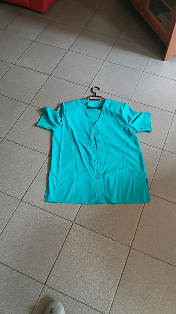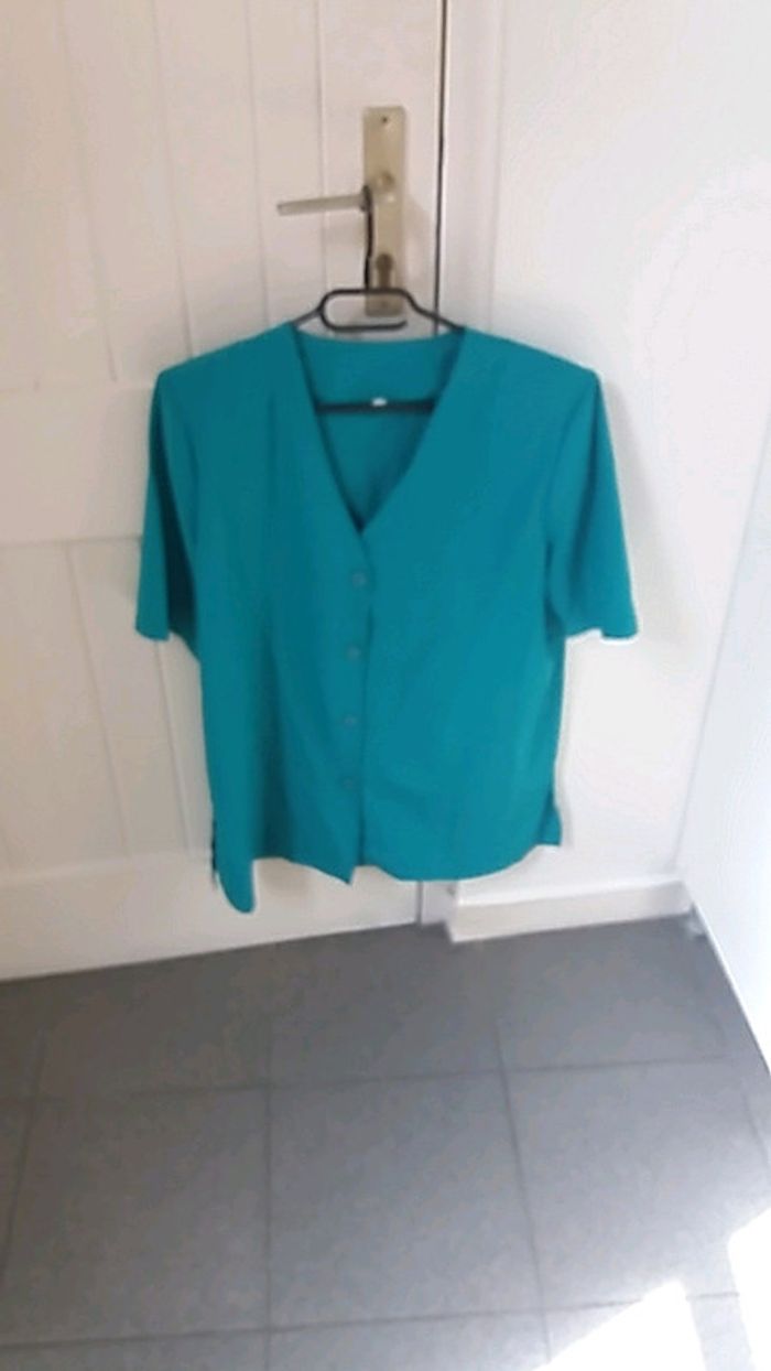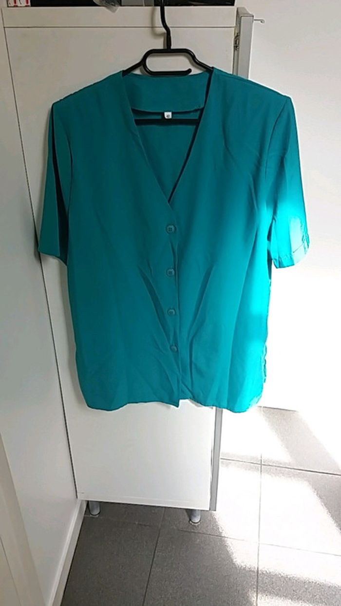 Chemisier manche courte # vert bleu # vintage