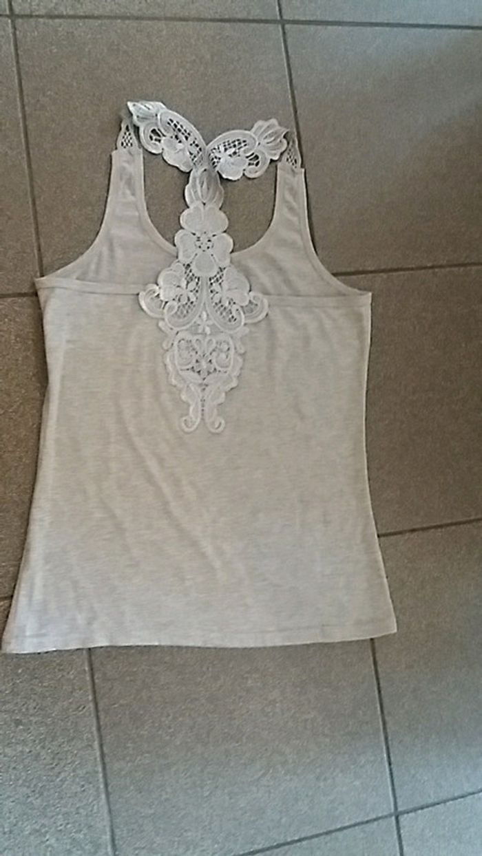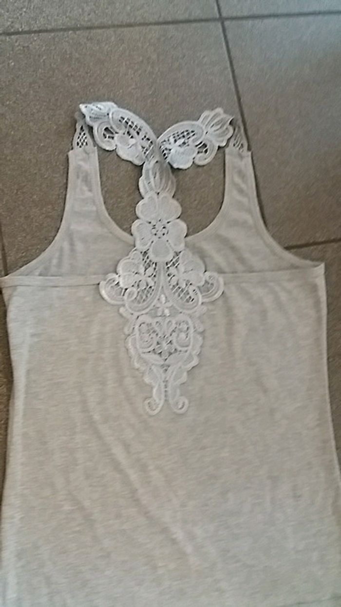 Debardeur gris clair Tres bon etat Taille 38 Avec le derriere style dentelle broder