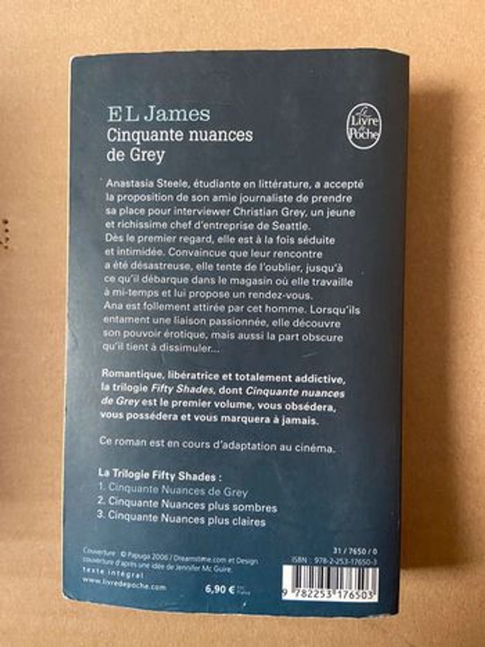 Livres 50 Nuances de Grey, les 3 tomes plus la préquelle Grey État global bon, petits défauts ici et là (voir photos) mais n’empêche pas la lecture 13€ le tout
