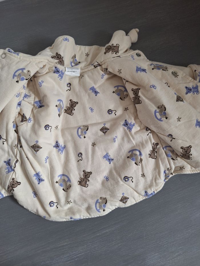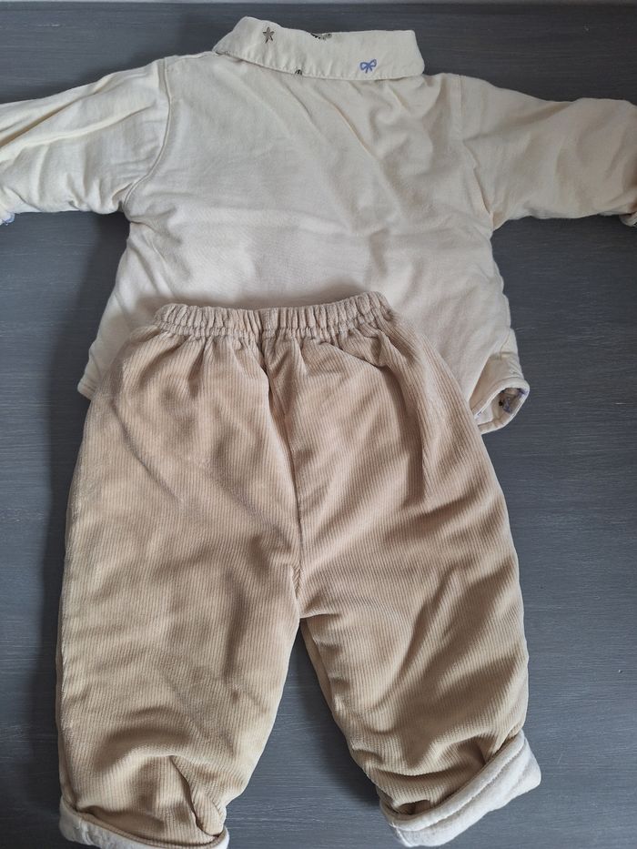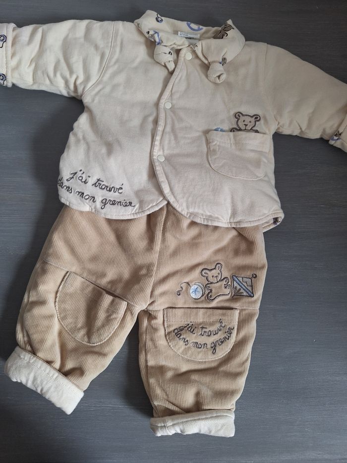 GARÇON 3 MOIS N°909 ensemble hiver - veste pression taupe/ creme Imprimé 100% coton , - pantalon taupe velours , beige Elastique taille 76% coton 24% polyester Taille 3 mois 4,50€ #kelly_garçon3mois