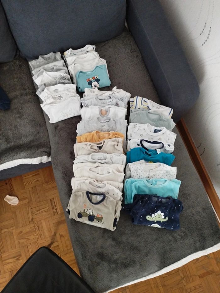 Vend lot 3 mois en très bon état. 7 bodies manches longues 4 bodies manches courtes 18 pyjamas Pleins de marques différentes, Kiabi, in extenso, Disney, Gémo ... Envoi rapide.