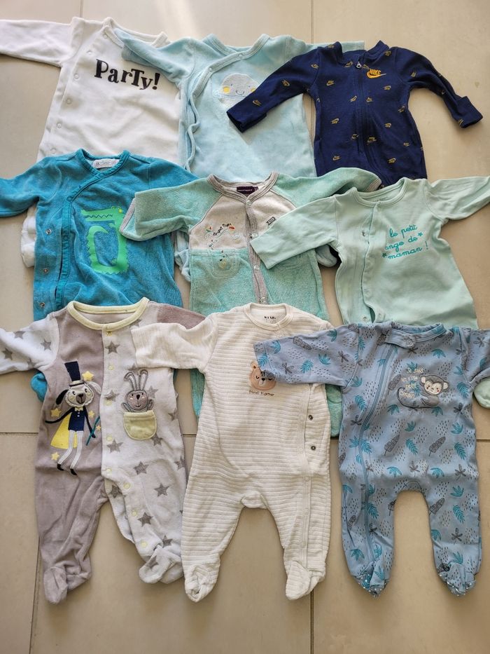 Lot de 9 pyjamas bébé garçon, taille 3 mois, ouverture à l'avant Portés mais en bon voir très bon état Marques diverses