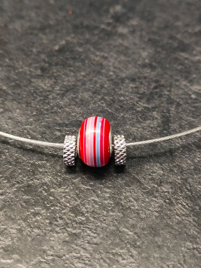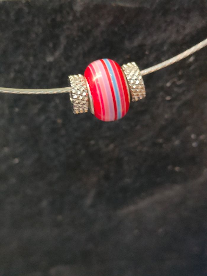 Collier en fil d'acier avec grosse perle Neuf jamais porté