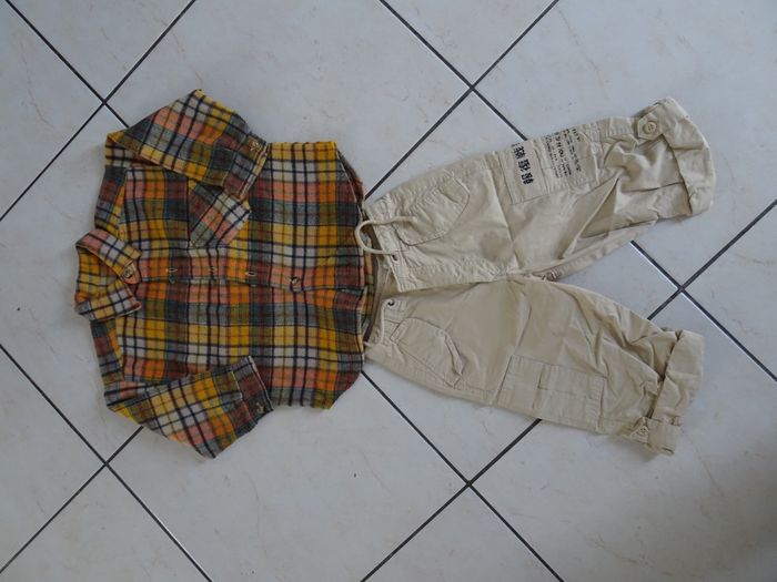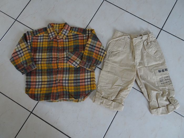 Lot vêtements garçon âge 3 ans, chemise à carreaux et pantalon bermuda, possibilité achat unité.