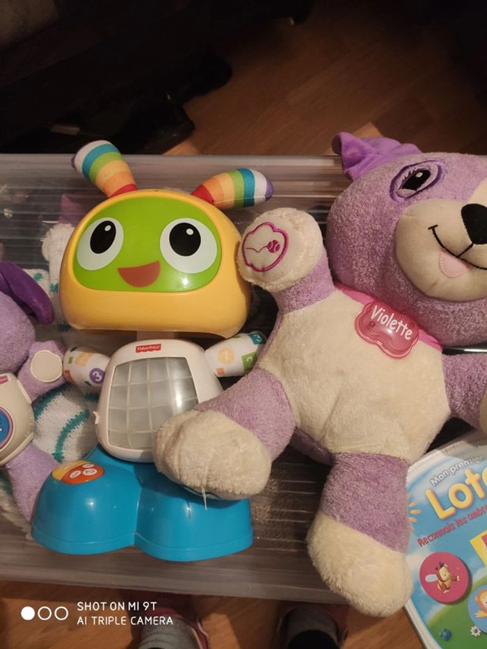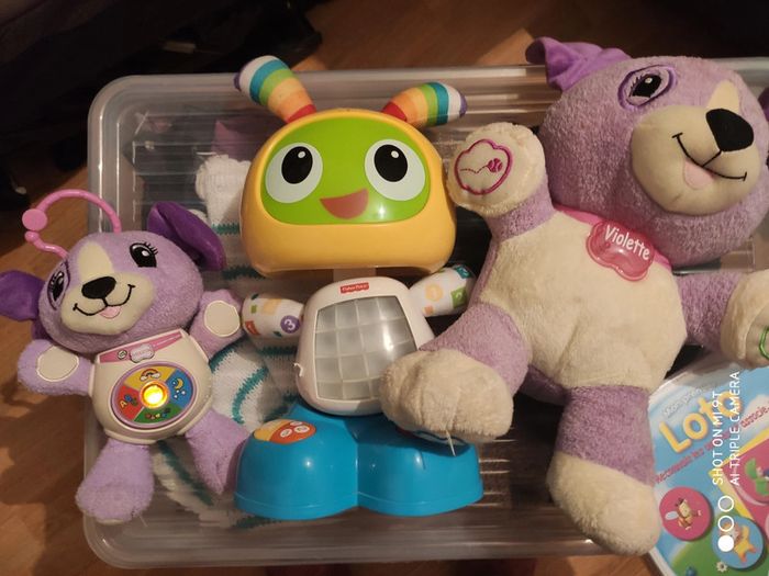Lot jouet interactif premier âge VTech plus mémo cotoon Petit violette version espagnole comme neuve Mémo neuf sous blister Bebo le robot comme.neuf Grande Violette je note satisfaisant je ne sais pas si elle fonctionne encore