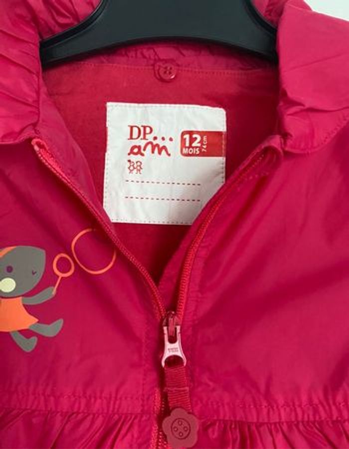 joli coupe vent imperméable léger fille DPAM 12 mois neuf petite capuche à l’intérieur 2 poches