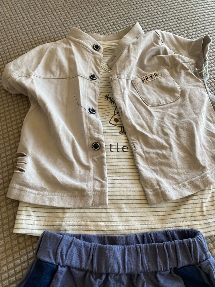 Ensemble 3 pieces 12/18 mois gilet T-shirt débardeur + pantacourt /short long - photo numéro 6