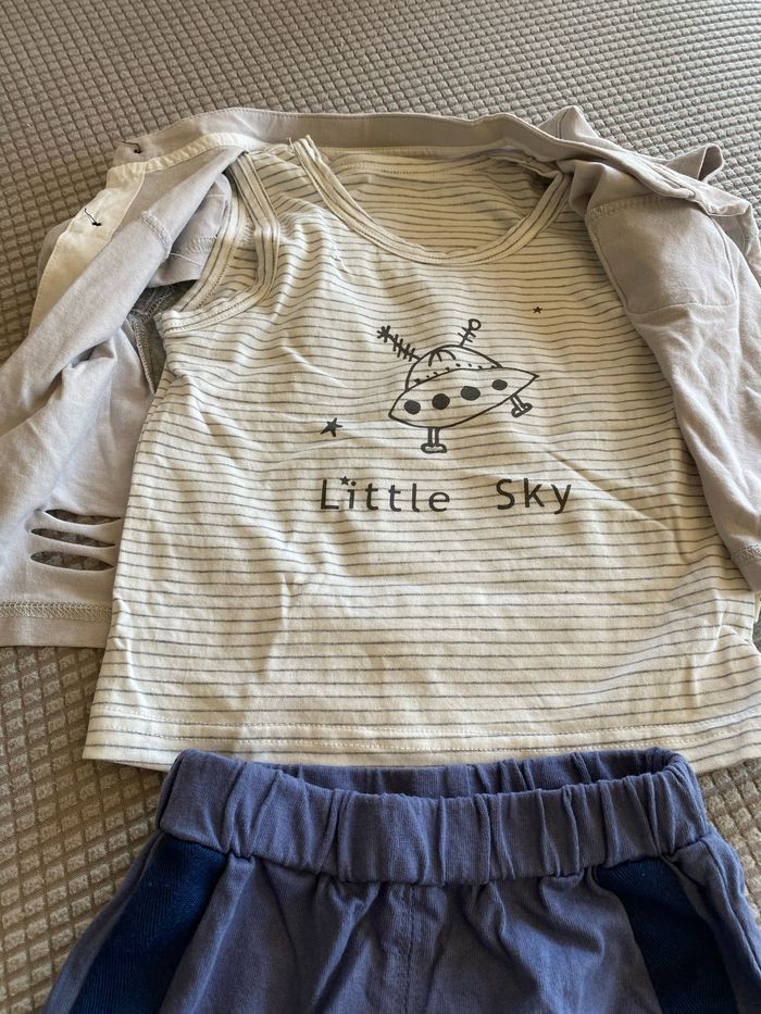 Ensemble 3 pieces 12/18 mois gilet T-shirt débardeur + pantacourt /short long - photo numéro 2