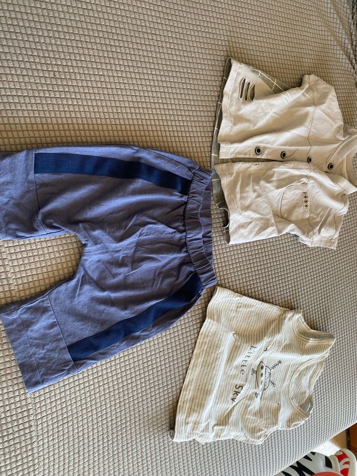 Ensemble neuf jamais porté 3 pièces : 12/18 mois taille 80 Un gilet manche courte Un t-shirt /débardeur Un pantacourt /short long confortable D’autres vêtements en 18 /24 mois disponibles chaussures , casquette , lunette etc Je suis entrain de faire les annonces pour l’été . Donc demandez moi c’est pas fini tailles dispo du 3 au 24 mois Lot au choix pour économiser les frais de port Photos sur demandes . Demandez ce que vous cherchez , j’ai sûrement cela chez moi ☺️ J’ai du Fille du à mois au 14 ans