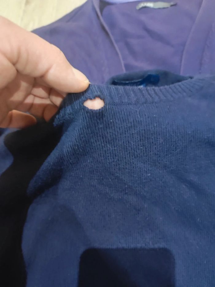 Un gilet fin violet jules un petit point a faire Un pull fin bleu marine Celio attention un petit point a faire également N'hésitez pas à regarder mon dressing j'ai d'autres articles les réductions sont activées