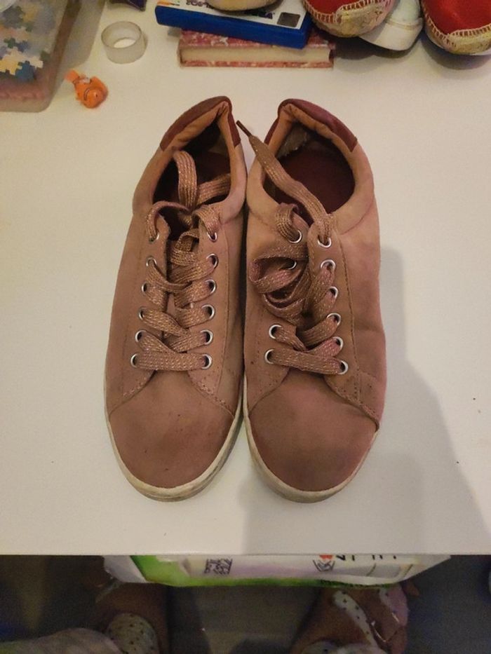 Baskets en daim  vieux roses - photo numéro 1