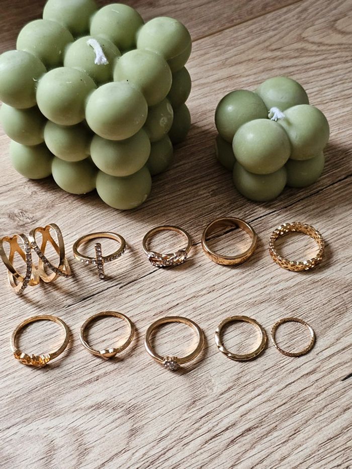 Lot de 10 bagues dorées fantaisie
