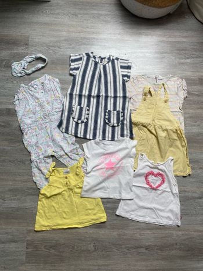 Lot 7 pièces 12-18 mois Bonjour, je vends ce lot de vêtements en taille 12-18 mois comprenant : - 1 ensemble tee shirt et robe H&M 12-18 mois - 1 robe ZY 12-18 mois - 1 ensemble combinaison et bandeau verbaudet 18 mois - 1 débardeur tape à l’œil 18 mois - 1 débardeur Obaibi 18 mois - 1 tee shirt converse 12 mois