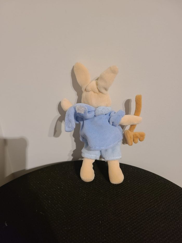 DOUDOU LAPIN BLEU AVEC RATEAU JOLLYBABY grelot 123