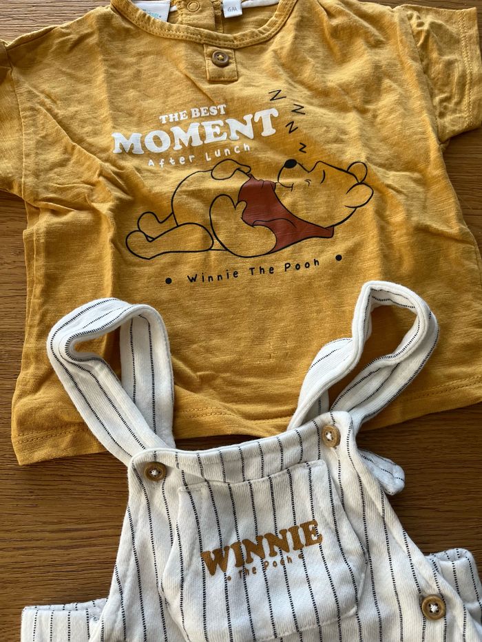 Les salopettes ce ferme/ouvre par pression entre les jambes. La winnie est une salopette short Très bon état, très peut porter
