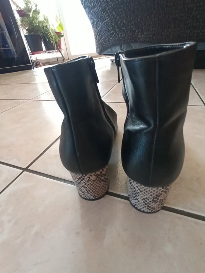Bottines noires avec talon aspect peau de serpent taille 39 Talon 6 cm Porter une fois