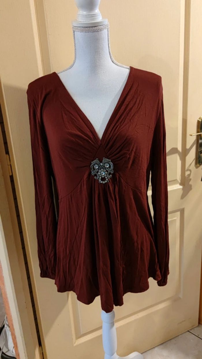95% viscose 5% élasthanne Avec broche centrale Très peu porté Excellente état Taille 46/48