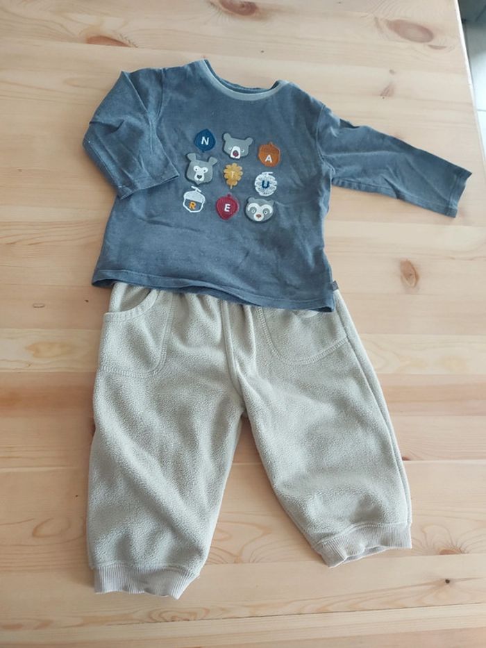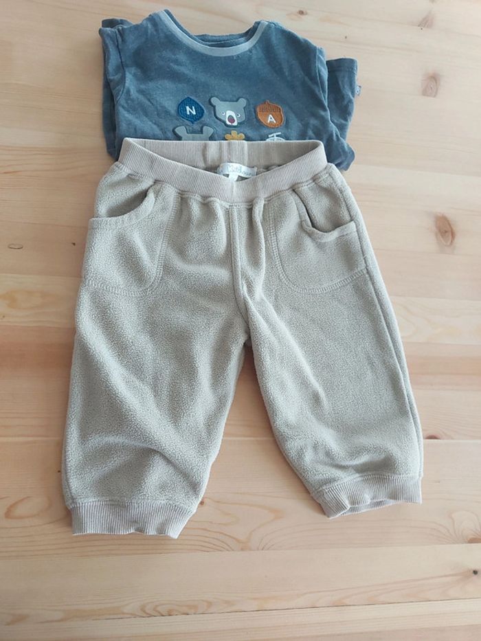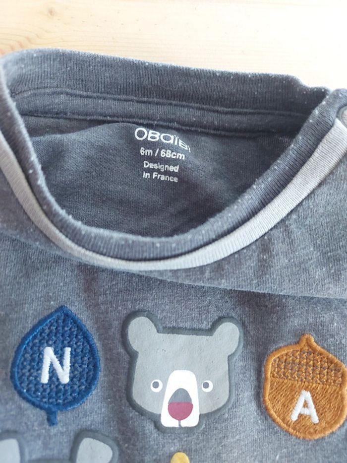 Pantalon kitchoun 6 mois Tee shirt manche longue obaibi 6 mois Porté mais très bon état