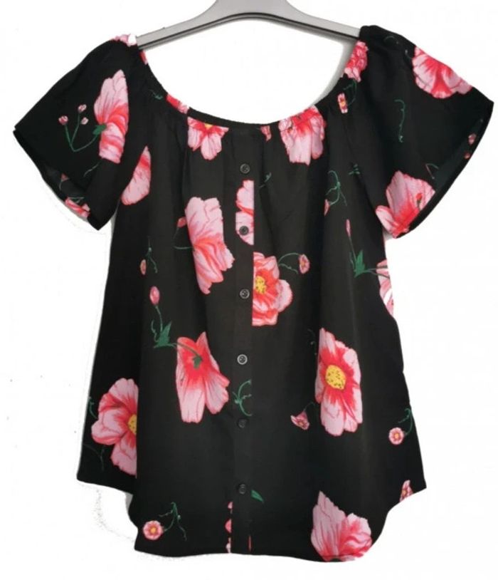 Blouse épaules dégagées taille XS Noir/Rose 100% polyester