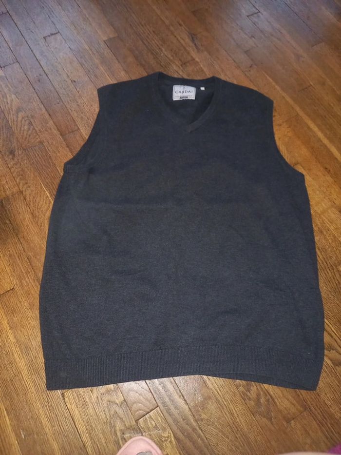 Pull homme sans manches gris.